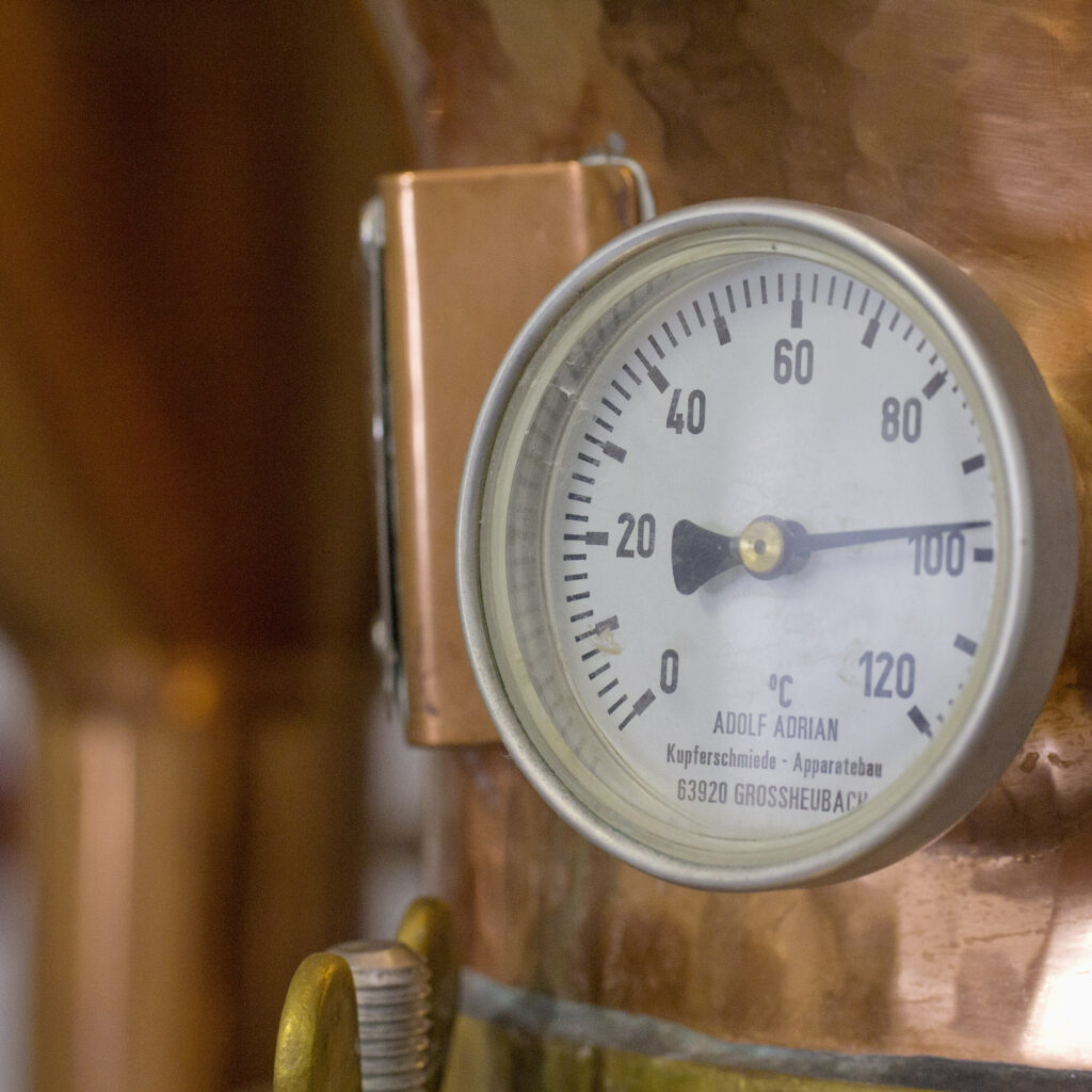Gebrannt wird dann in der hofeigenen Brennerei in Kupfer und ordentlichen Mengen.