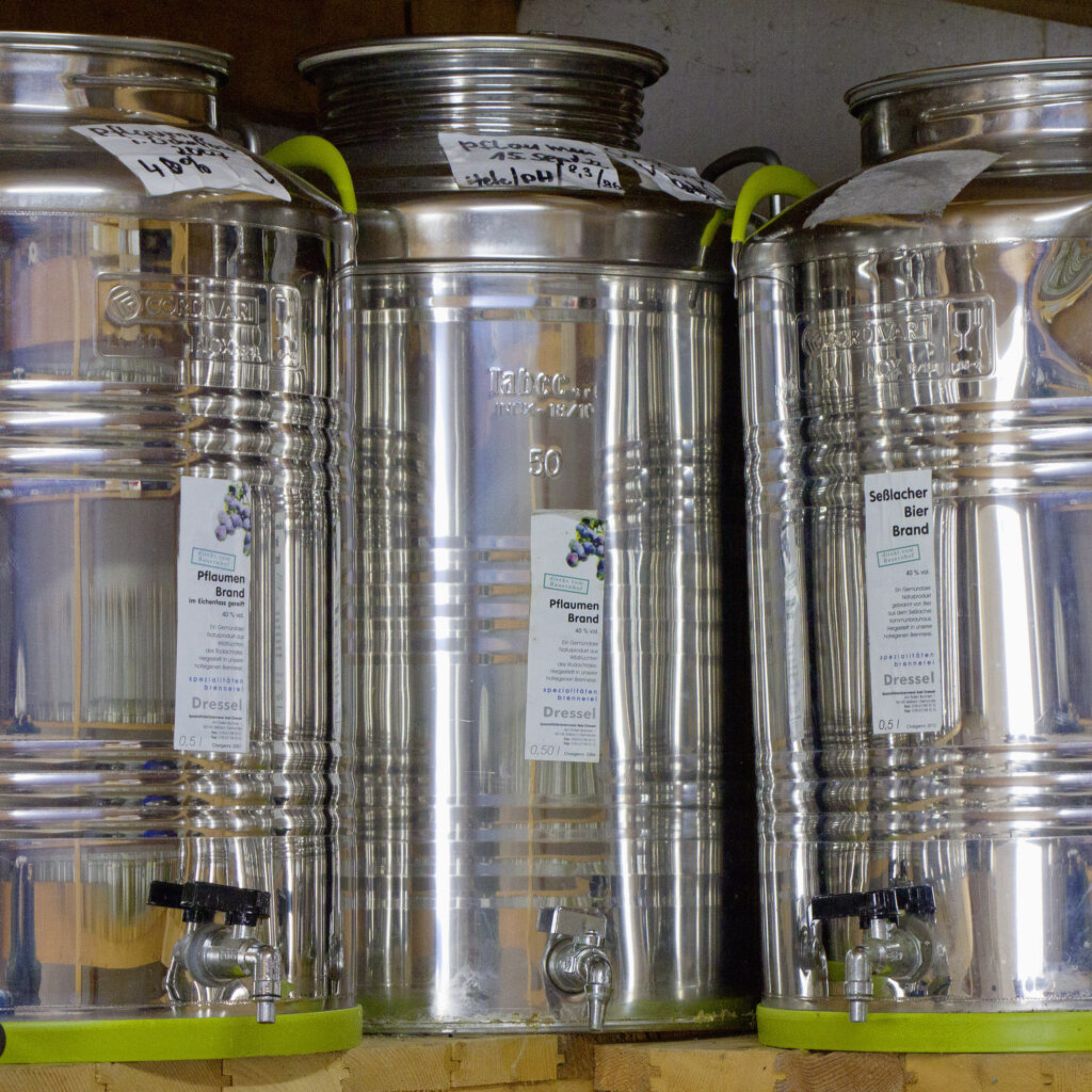 Geist verkorken sie ebenso, aus: Himbeeren, Hasel- + Walnuss, Mandeln und Brombeeren.