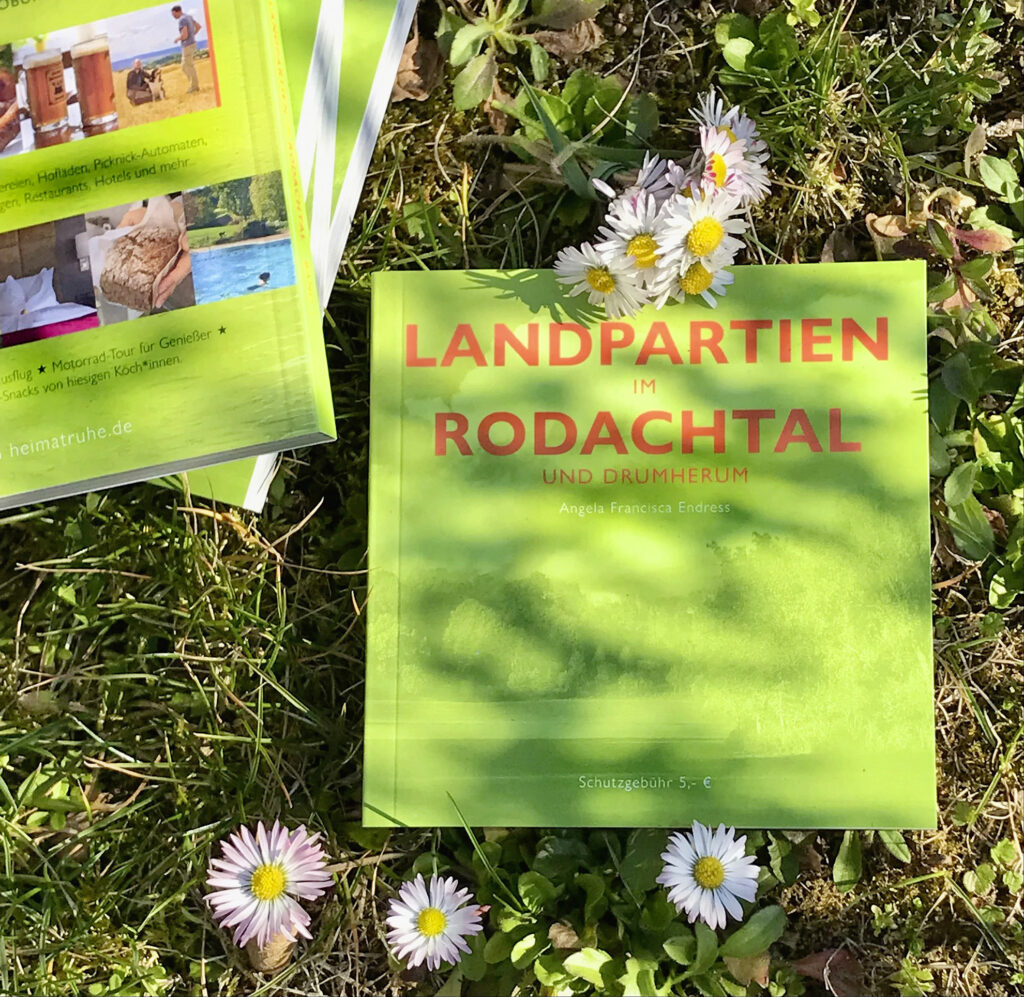 Auch hier gibt’s das kleine grüne Buch für 5,-€ „LANDPARTIE IM RODACHTAL UND DRUMHERUM“ mit noch ganz vielen anderen Tipps auf seinen 120 Seiten für’s Wochenende und das sonstige gute Leben hier in der Region.
