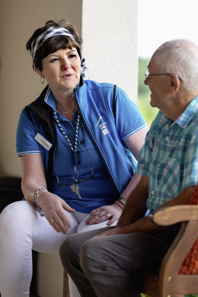 In der ihnen vertrauten bäuerlichen Umgebung der Diakoniestation ist es fast wie auf dem Bänkchen vorm eigenen Austragshof.